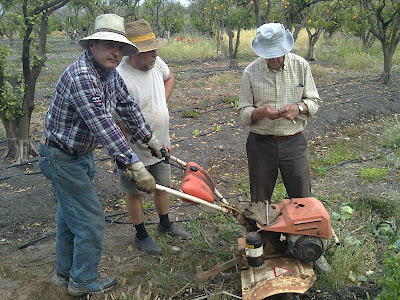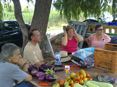 Este día con motivo de la comida por la visita de los padres de Marga, Salvador Peiro se acerco a La Creueta y al otro Salvador y Carlos, estuvieron peleando con el motocultor que a duras penas se digno ha hacer un par de tiras
