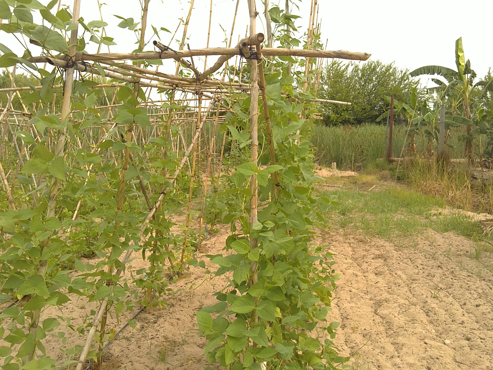 Las judías tampoco han ido muy bien, ya casi no salen, y las que salen son pequeñas. El vecino tampoco ha tenido suerte con esto, no le sacan flor las plantas y por tanto no hacen fruto