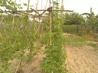 Gracias Coke, por ir documentando nuestras aventuras hortelanas. Una salvedad quiero hacer sobre una foto en la que hablas de las ultimas judias que se plantaron. No son las de la foto. Las judias las planté en la fila 7 y lo que aparece en la foto son "hervellas", una especie de judia seca que se utiliza en Galicia para hacer fabada, o como si fuera un frijol. Así pues, hemos de esperar que se llenen las vainas y son plantas bajas, que no suben como las judias. Creo que pronto podremos comer esas judias secas tiernas, que están muy buenas. Si las dejamos secar, se conservarán varios meses.