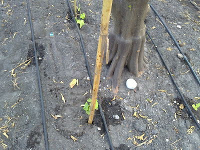 La lufa, esponja natural, el día de su transplante, actualmente esta bastante crecida, ya veremos que tal va.
