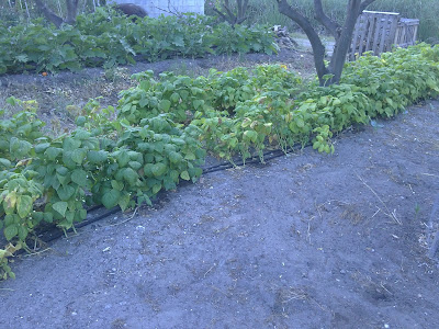 Las últimas judías que se plantaron, aun no han empezado a dar frutos y las hojas no tienen muy buena pinta