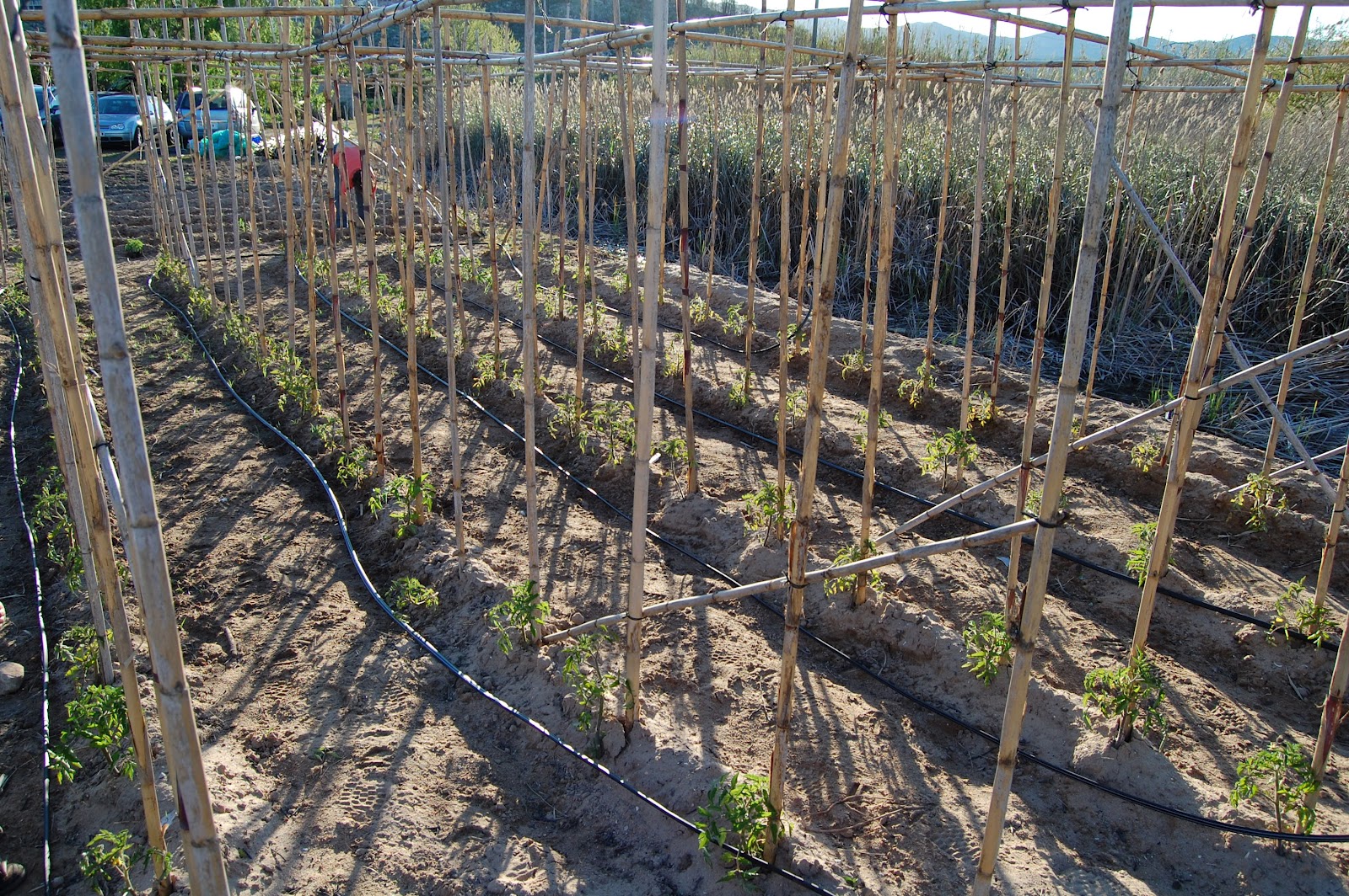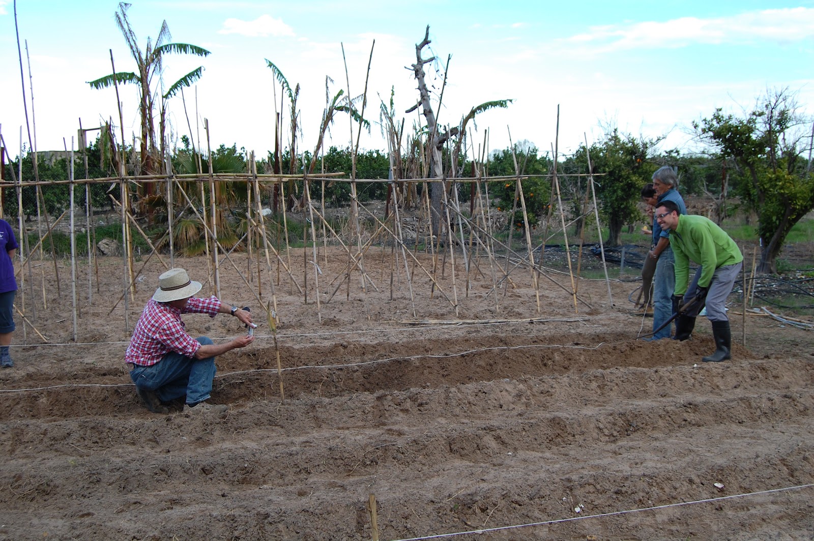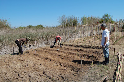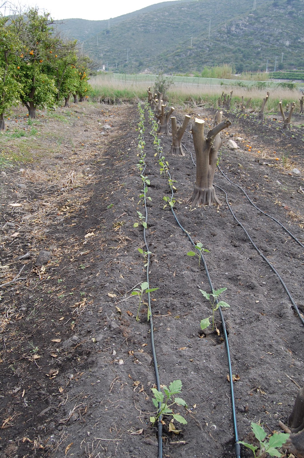 El domingo, Salvador, Toni y Vicent, plantaron dos tiras de Berenjenas y una de pimientos.
