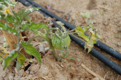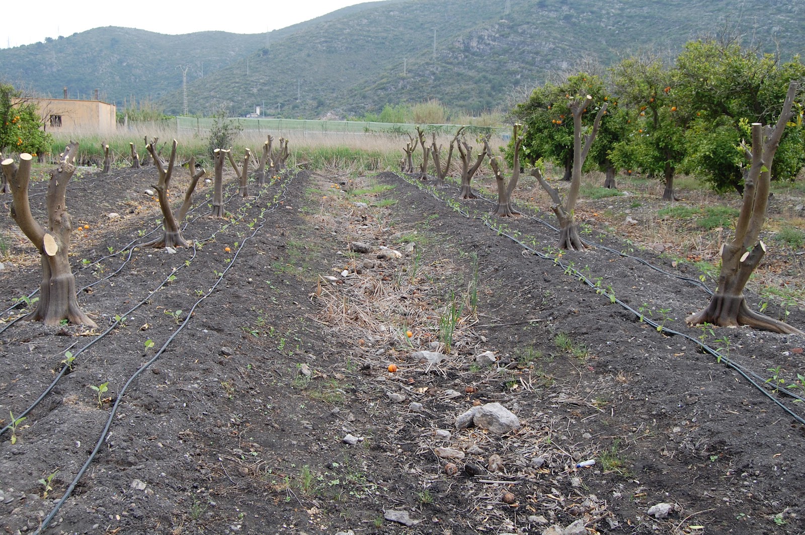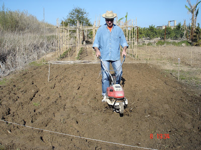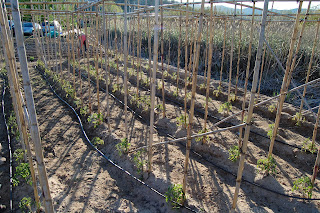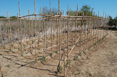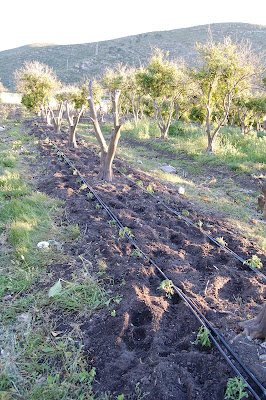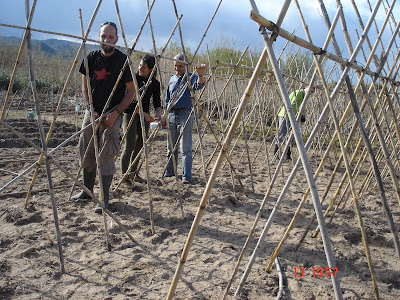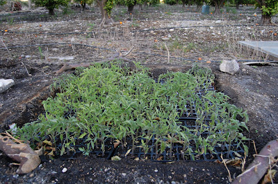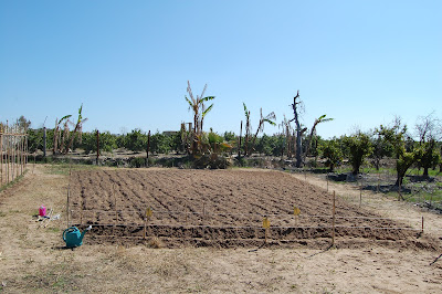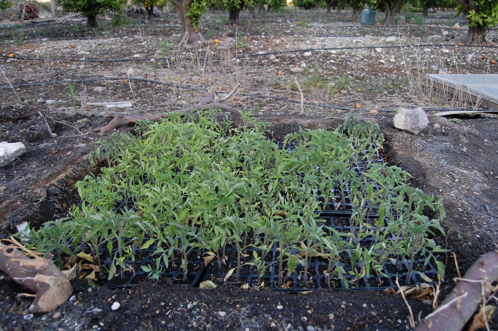 El domingo, Salvador, Toni y Vicent, plantaron dos tiras de Berenjenas y una de pimientos.