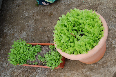 Os presento a Sylvette. Esta es la segunda semana que viene, y lo hace con ilusión. Hoy a traído dos macetas con lechugas, con las que hemos plantado una tira entera.